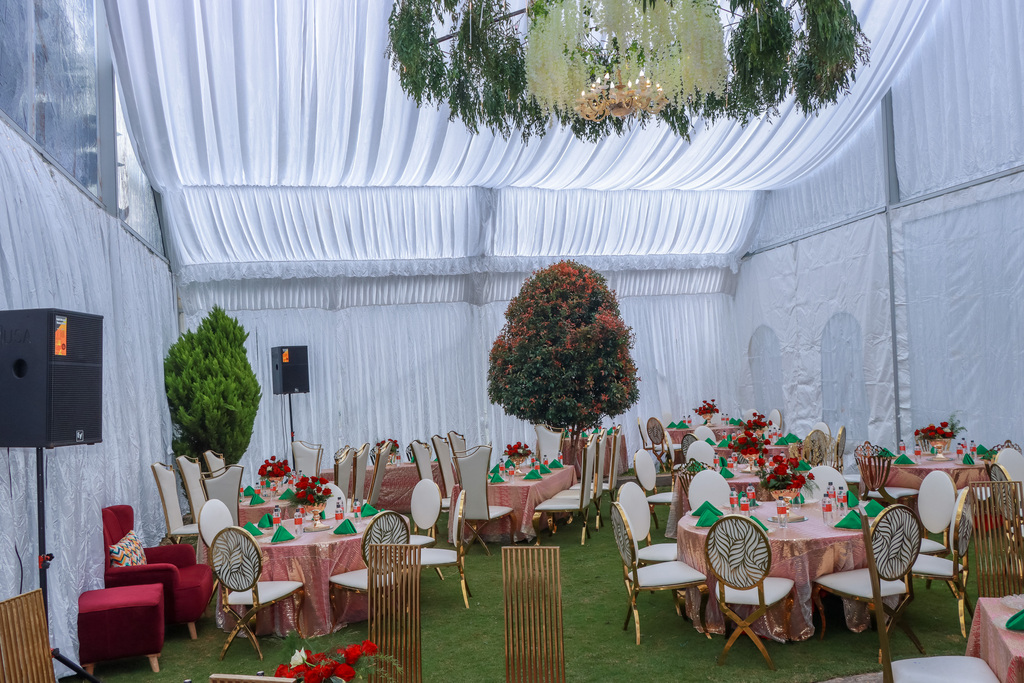 Experience the perfect blend of elegance and nature with our meticulously designed outdoor event setups. At Bizznique Events, we specialize in creating enchanting environments for your special occasions. Our attention to detail is evident in every aspect, from the beautifully draped canopies to the artfully arranged floral centerpieces. The lush green surroundings provide a serene backdrop, enhancing the charm and sophistication of your event. Trust us to transform your vision into an unforgettable experience.