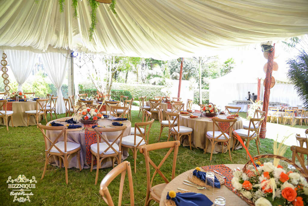 Experience the perfect blend of elegance and nature with our meticulously designed outdoor event setups. At Bizznique Events, we specialize in creating enchanting environments for your special occasions. Our attention to detail is evident in every aspect, from the beautifully draped canopies to the artfully arranged floral centerpieces. The lush green surroundings provide a serene backdrop, enhancing the charm and sophistication of your event. Trust us to transform your vision into an unforgettable experience.